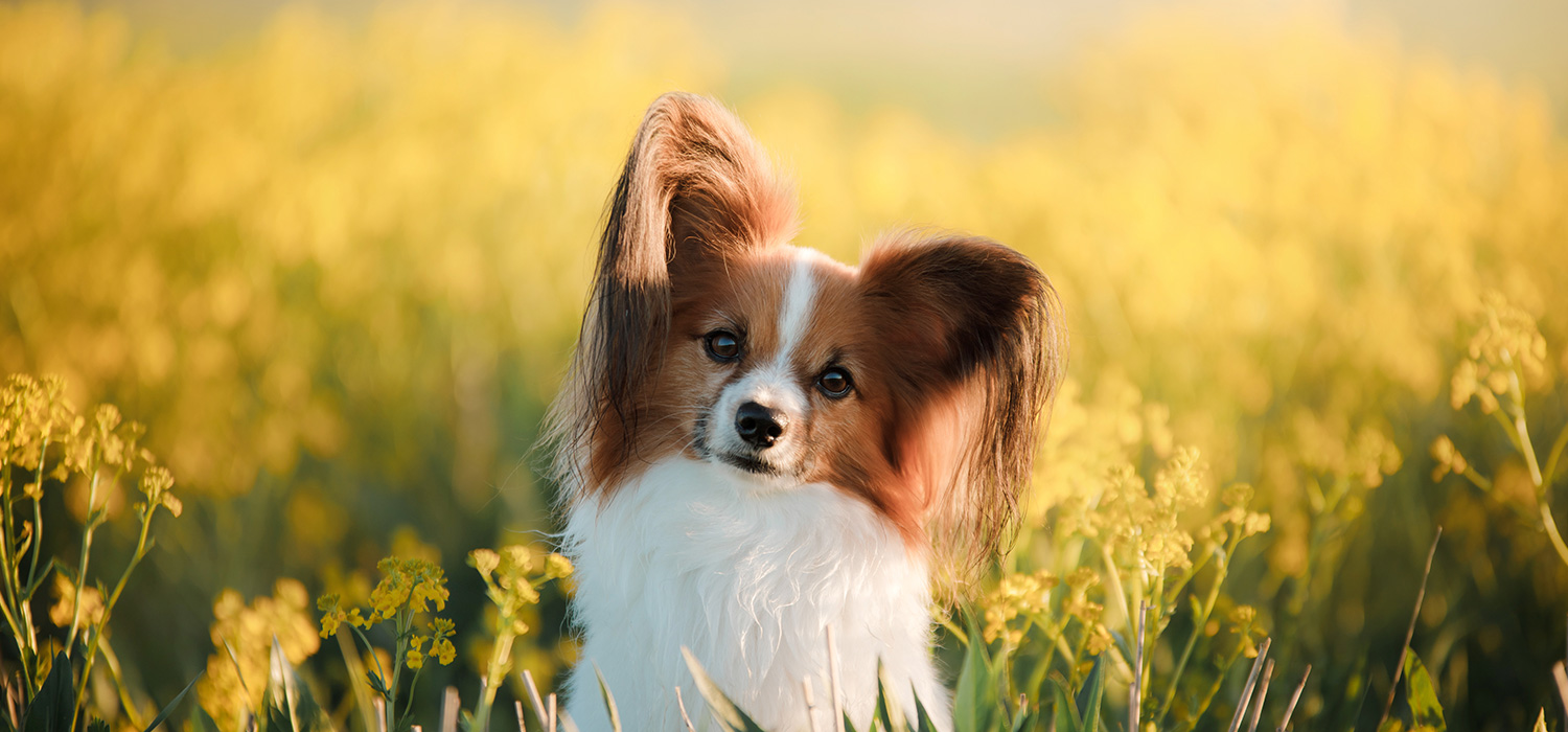 蝶のような耳が印象的なパピヨンは、活発で賢い小型犬です。体重は3〜4kg前後で、骨壺サイズは3寸〜4寸が一般的です。個体差により4〜5寸が検討されることもあります。